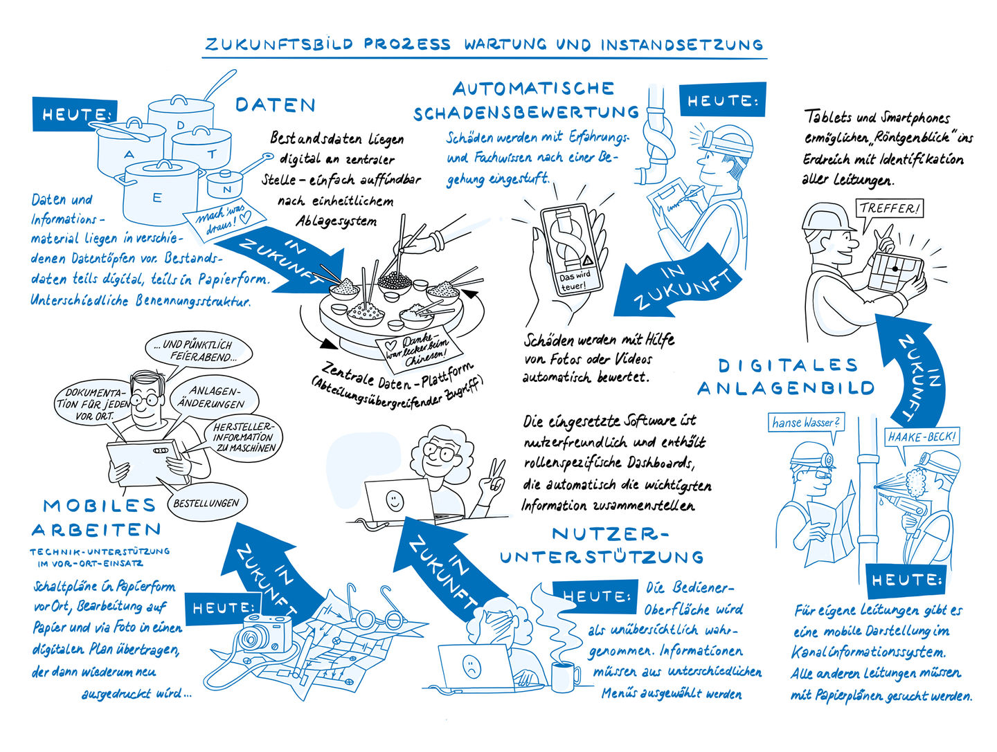 In 18 "Prozessbildern" zeichnet Bremens Abwasserunternehmen seinen rund 400 MitarbeiterInnen den Weg der digitalen Zukunft auf: Jedes Ressort wird einbezogen.